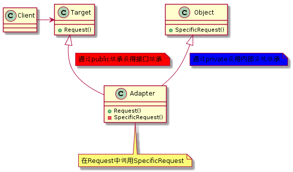 //类模式,适配器类,通过public继承获得接口继承的效果,通过private继承获得实现继承的效果