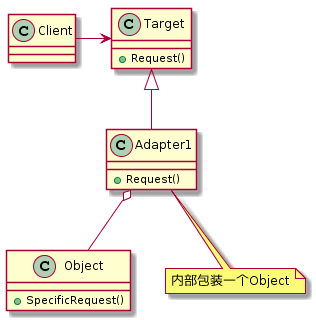 //对象模式,适配器类,继承Target类,采用组合的方式实现Object的复用