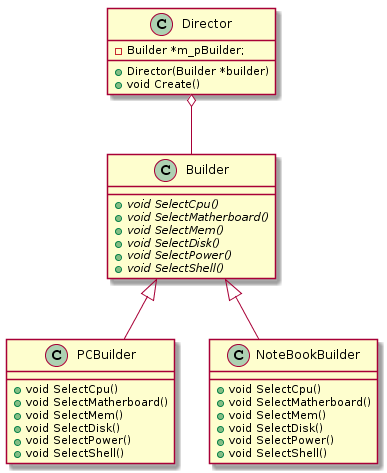 建造者模式是将一个复杂对象和他的构造和组装过程分离,这样再重复创建不同对象时使用相同的流程进行建造。对于调用者来说,只需要知道产品的类型,而不需要知道具体的组装过程。