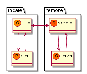 远程代理多见于通讯,如网络、IPC和RPC中,一般需要提供提供了客户辅助对象和服务辅助对象,为客户辅助对象创建和服务对象相同的方法(如JAVA中的stub和skeleton),然后实现之间的具体通讯,对于client 而言stub(其实是stub和skeleton共同工作)就是其远程代理。