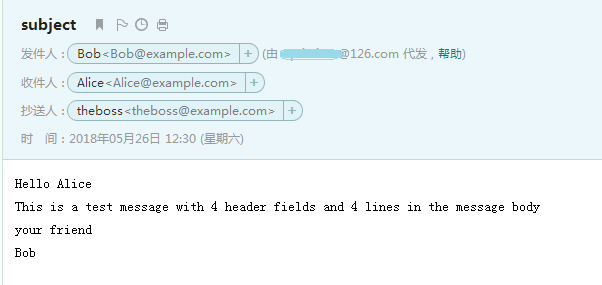 Bob\r\n.\r\n"; //注意subject关键字与正文之间要有一个空行
