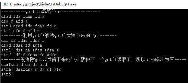 cout << "--------没消除get()遗留下来的'\\n'就被下一个get()读取了,所以str5输出为空-----" << endl;