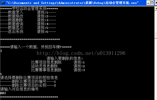 cout<<"\t\t比赛项目信息删除 请按:1"<<endl;