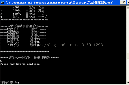 cout<<"请分别输出比赛参赛运动员姓名、比赛项目名称、比赛成绩、比赛名次."<<endl;