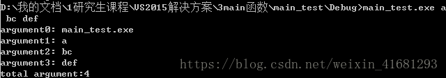 从而可以得出结论:两个参数中第一个参数argc表示在Dos命令行中的输入的程序名和参数个数之和,第二个参数中argv[0]记录的程序名,后面的argv[i]记录的输入参数。
