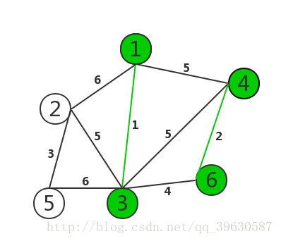 按照排好的顺序依次取边,若不属于同一集合则将其加入最小生成树集合,每当加入新的边,所连接的两个点即纳入最小生成树集合,为避免重复添加,需要进行辅助集合更新
