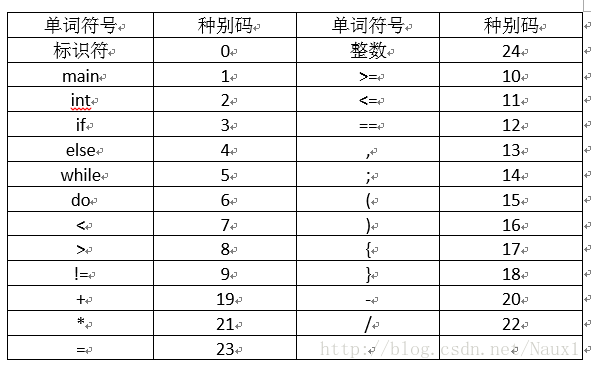 与词法分析有关的表格: