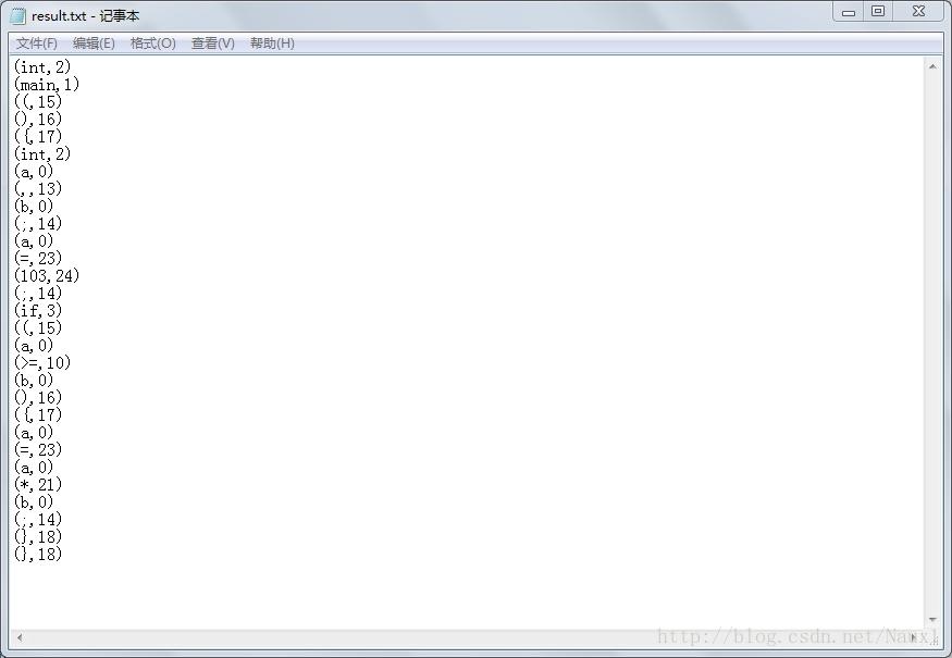 输出:存放以(单词,种别码)形式输出的result.txt文件