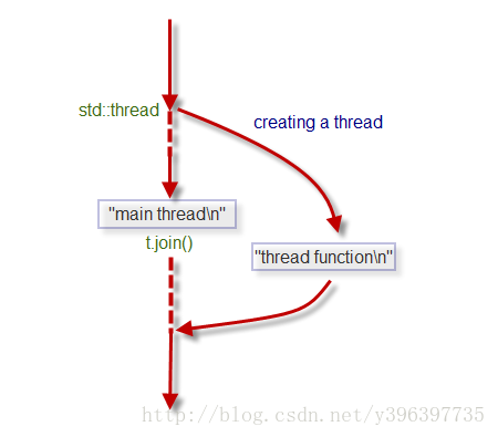 当工作线程开始构造std::thread t的时候,可能会有创建时的开销(通过使用线程池可以减少此开销),图中虚线表示可能的阻塞状态。