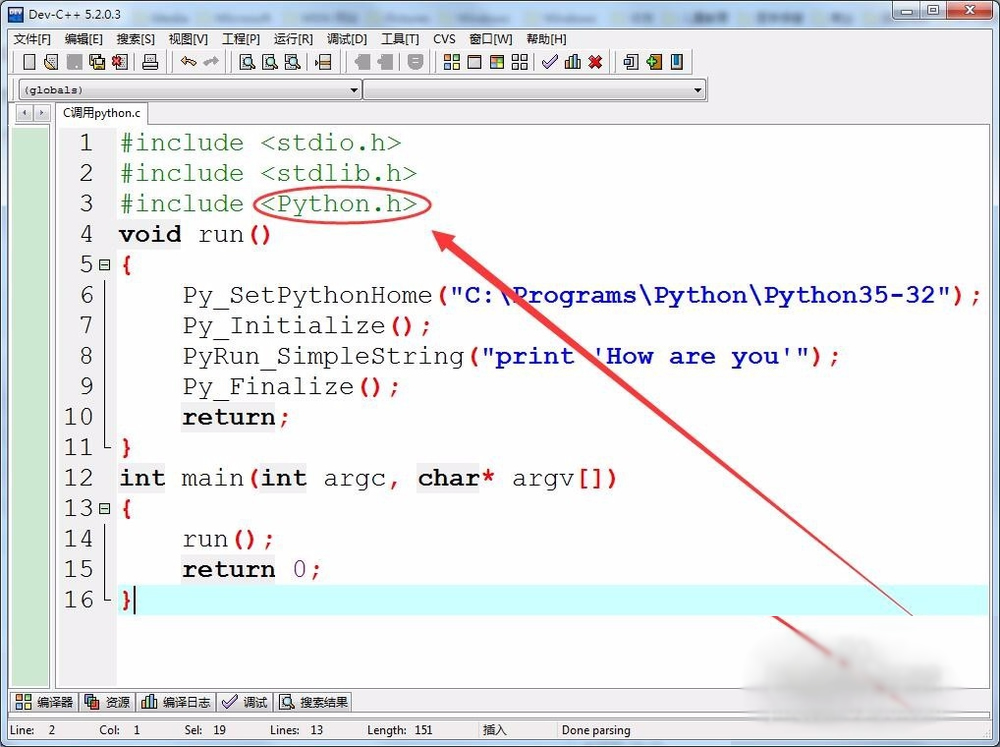 首先,C语言中调用python,要使用头文件Python.h。