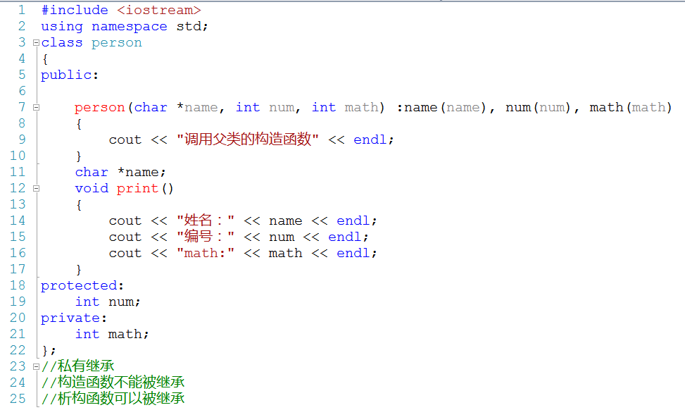 - 4.冒号:告诉系统,派生类从那个基类派生
