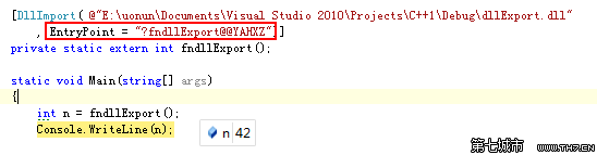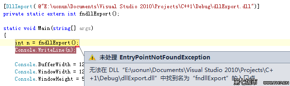 不过我们的目的是要在C#中使用,而不是用眼睛在 Dependency 里面看啊!嗯,既然入口点的名字都变了,要不我们在 C# 中手动指定入口点试试?