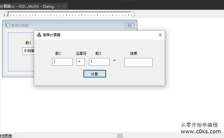 修改完成之后按下ctrl+f5可以直接运行,这时候我们输入1+1,点击计算是没有任何效果的,我们还没有写一行代码,下节用代码实现计算功能。