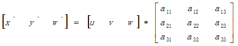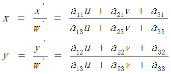 仿射变换(Affine Transformation)可以理解为透视变换的特殊形式。透视变换的数学表达式为: