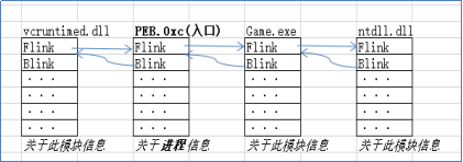 2.2)理解其三个成员的顺序,其指向_LDR_DATA_TABLE_ENTRY元素中开始的三个成员,而 _LDR_DATA_TABLE_ENTRY 中存储着就是关于有关模块信息的元素(比如模块名等)