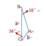 注意到,在连续绘制三角形的过程中,重点是根据A点求得B点坐标或者反之,那么根据正弦定理,我们可以求得b边的长度,根据BC边的与x轴的夹角以及36°角,我们可以得到A点的坐标。进而可以得到每一个三角形另外两点的坐标,一个五角星就绘制完成了。