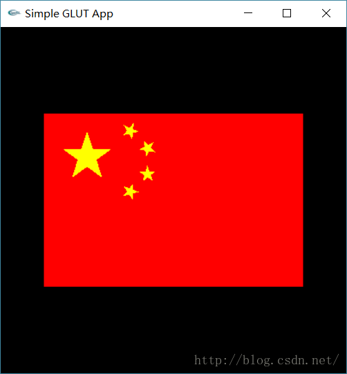 如果不加入这一部分考虑,在对窗口进行缩放时会发生五星红旗拉伸、变形的情况。于是增加函数glutReshapeFunc以及glOrtho函数。glutReshapFunc用以指定窗口大小调整是的重绘制函数。glOrtho是创建一个正交平行的视景体。changeSize函数是在窗口大小发生变化时要执行的操作。