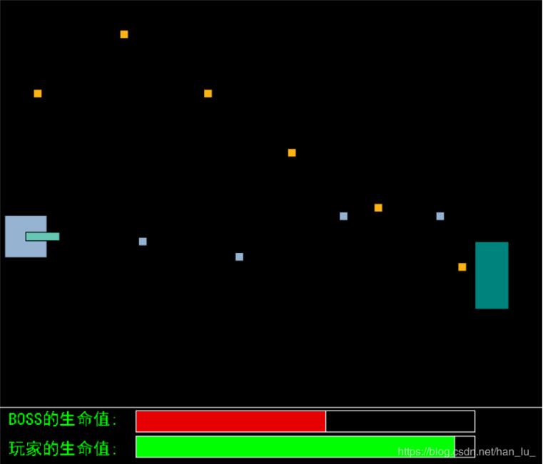 fillrectangle(160, 515, 560, 540);//玩家血条