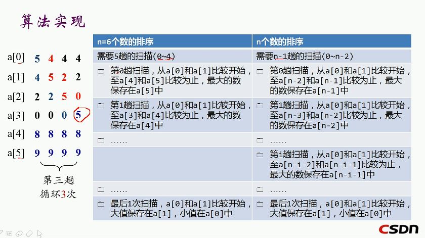 for(i=0;i<10-1;i++)//n个数的数列总共扫描n-1次