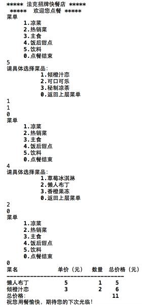 printf("***** 法克招牌快餐店 *****\n");