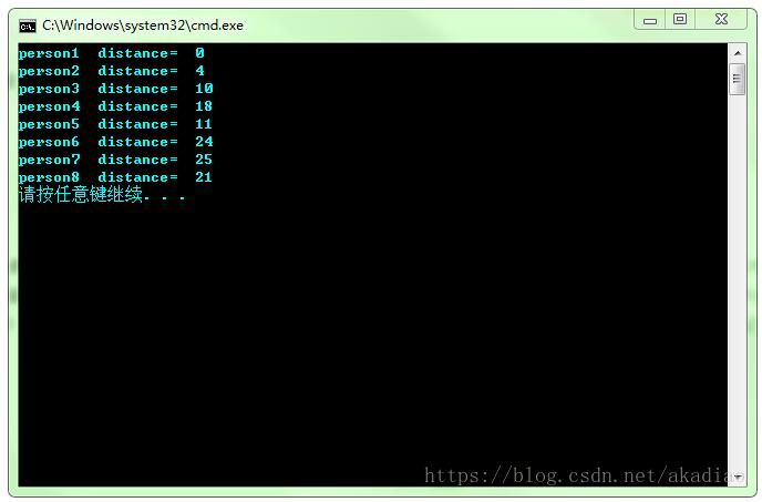 cout <<"person" << i <<" distance= " <<d<<"\n";
