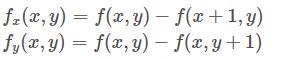 通过差分计算出图像在水平方向上及垂直方向上的梯度: