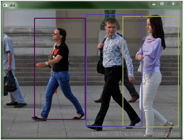 采用第一种方法,使用HOG特征结合SVM分类器进行行人检测,简单示例: