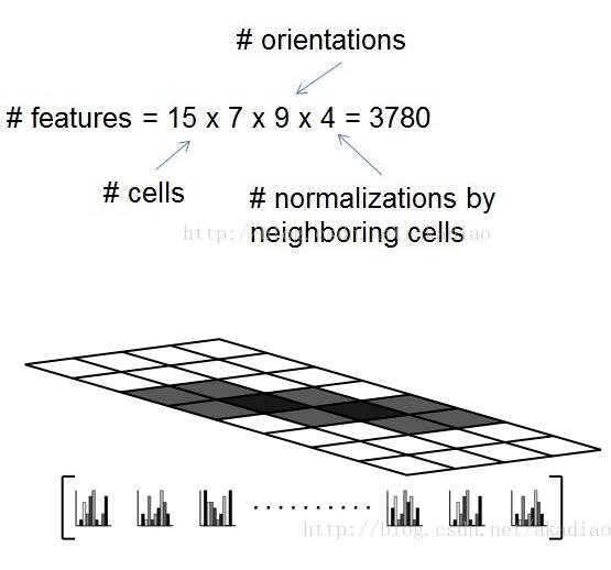 由于每个cell内的梯度方向分成了9个bins,这样每个细胞单元的HOG特征向量长度是9.