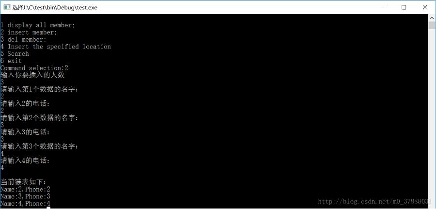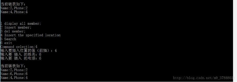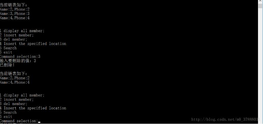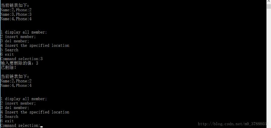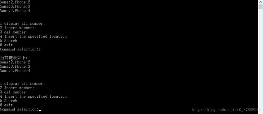 char command_str[]={"\n1 display all member;\n2 insert member;\n3 del member;\n4 exit\nCommand selection:"};