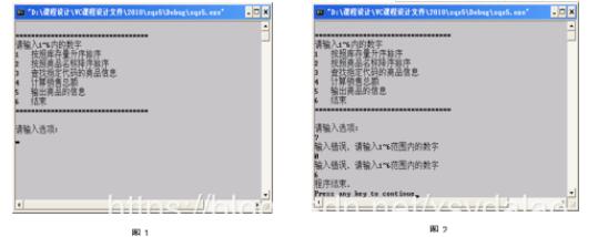 (1) 程序首先计算库存量与销售额,而后显示菜单,提示用户输入数字1~6以进行对应操作,运行界面如图1所示。