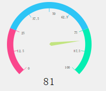 思路:外围三色的圆弧 红:蓝:绿 = 1:2:1,总共占270度。刻度线是根据所在圆弧的颜色而画,刻度线的角度也是根据坐标系的旋转而画。刻度值是根据刻度线的角度得到所要画的刻度的左上角的坐标,然后构成一个矩形,根据矩形画出刻度值。指针是根据四个点的坐标直接画的四边形,再旋转坐标系实现指针旋转的效果。下方的文字直接得到坐标横纵坐标位置得到矩形画出value的值