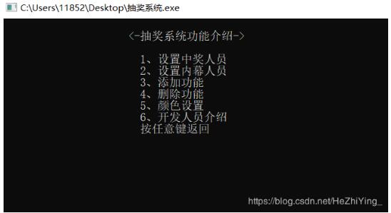 printf("\n\t\t <-抽奖系统功能介绍->\n\n");