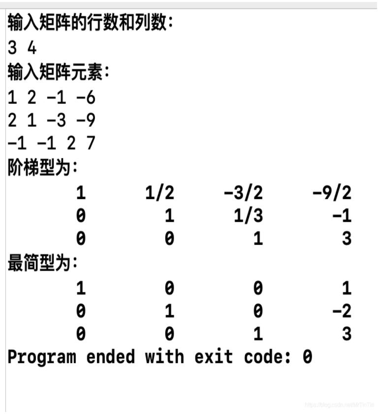 输入一个矩阵,可分别输出该矩阵的阶梯型和最简型。