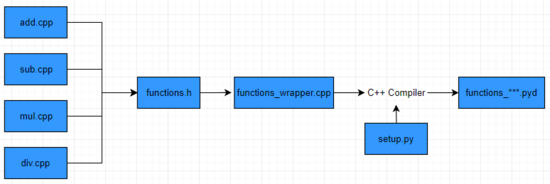 现有若干用C++编写的函数,为了能够用Python调用它们,可以通过pybind11将它们封装到一个Python模块中,在编写Python程序时只要导入该模块便能使用这些函数。