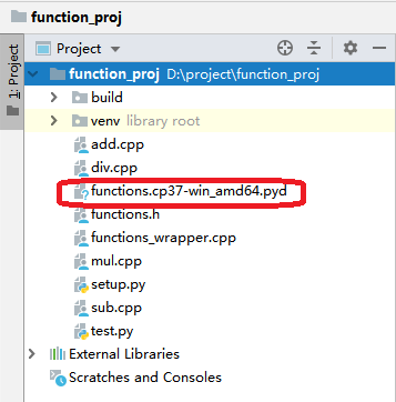 在命令行执行 python setup.py build_ext --inplace ,在当前路径下生成pyd动态库。