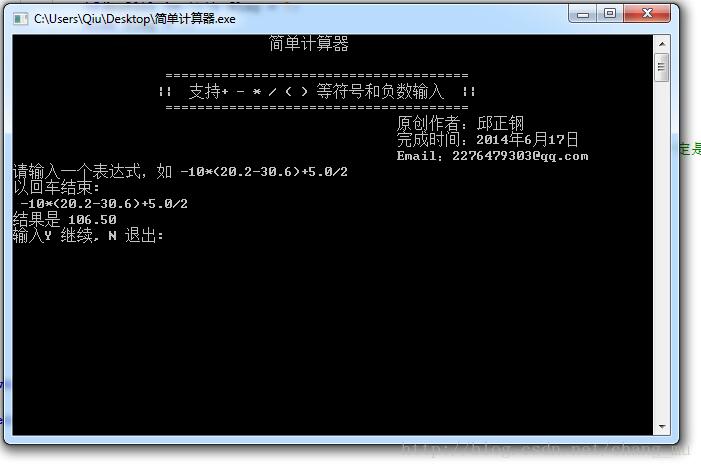 ** 设计目的:简单计算器,计算形如10*(20.2-30.6)+5.0/2的表达式值