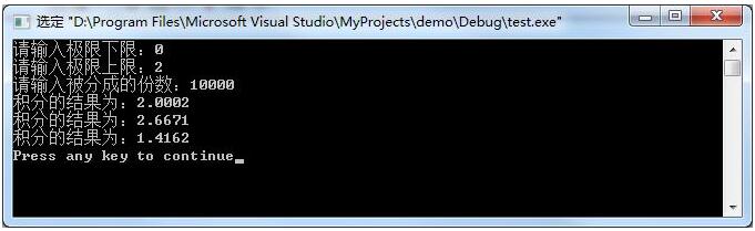 printf("积分的结果为:%0.4f\n",s3);
