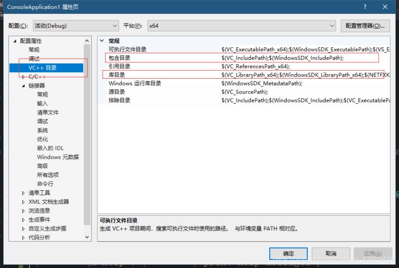 这一切就是基础文件,所以这个务必要准备好。其次就是准备好vs2019.然后勾选上c++桌面开发相关的东西。 当然了 我们需要准备一个控制台程序,就是hello world那个程序。然后将如图的路径加入到系统环境变量里。如果项目已经建好了,请重启vs重新加载系统变量。