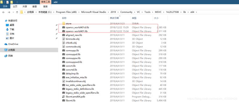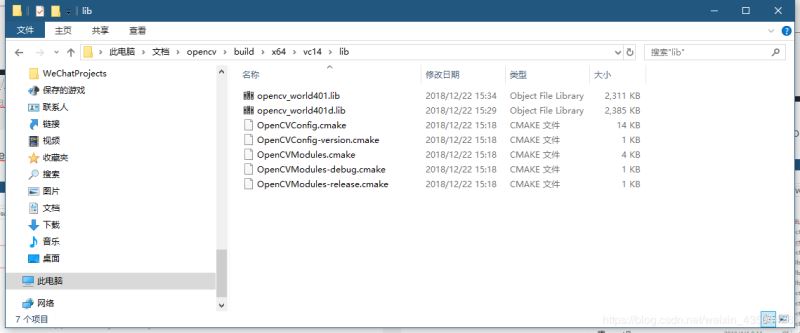进入目录可以看到如下的目录结构,所以我们把opencv \opencv\build\x64\vc14\lib 目录里的两个库文件给拷到了这个目录里。