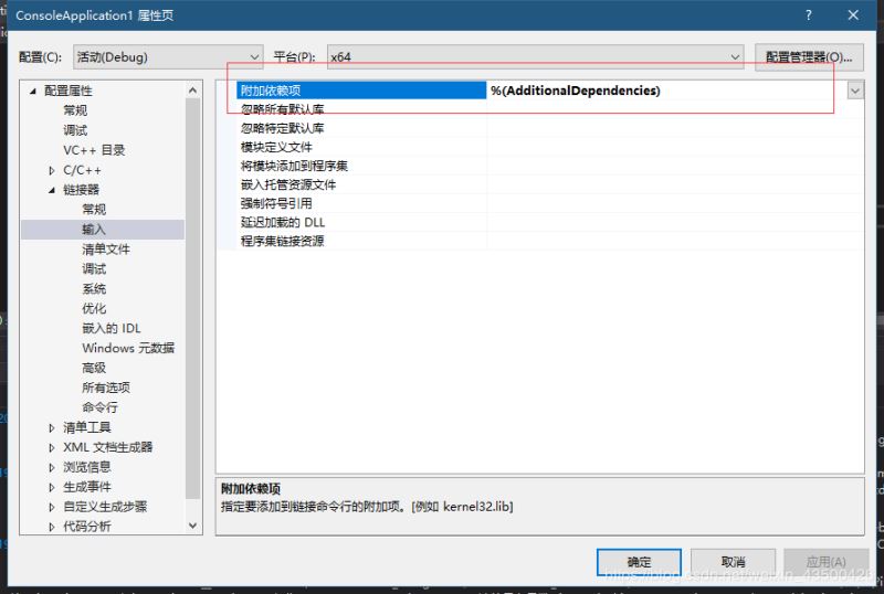 看了这么多我都慌了,这什么情况,要不不学了吧,我想说大家别慌,继续往下做。提示是无法解析各种东西,这个问题的原因就是我们少做了一样。是什么呢?我们在项目属性里,把链接器里的输入里的附加依赖项点开。
