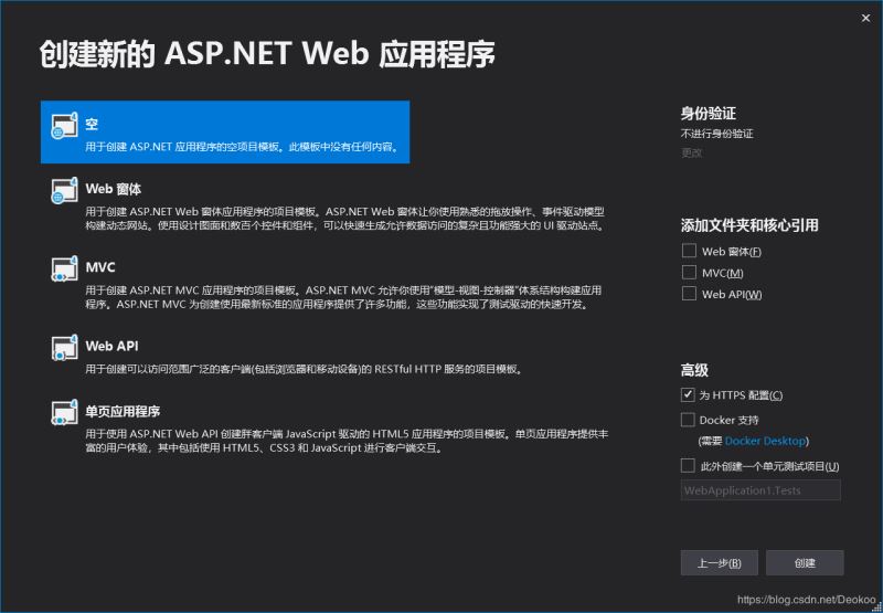 命名为一个WebApplication1的项目: