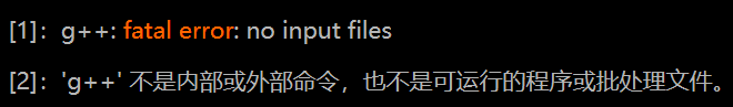 按下 win + R,输入cmd,回车键之后输入g++,再回车,如果提示以下信息[1],则环境变量配置成功。