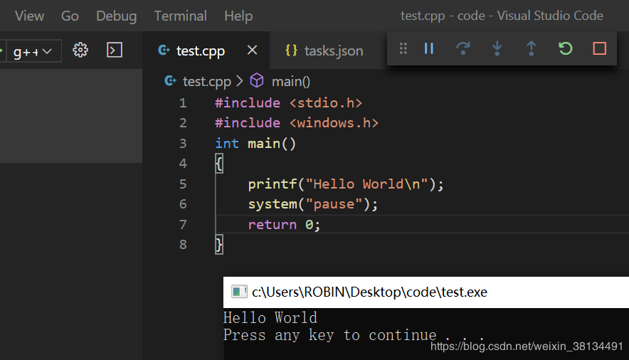 "preLaunchTask": "task g++" //修改此项 原来是: g++.exe build active file