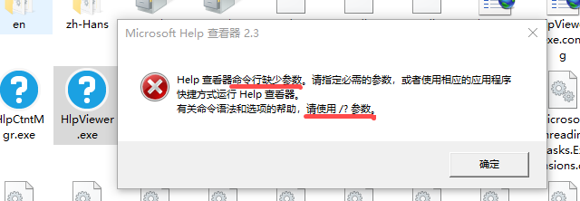 根据错误信息提供的提示,在该目录下打开命令行,输入 HlpViewer.exe /? 查看该程序的参数及选项说明,如下图: