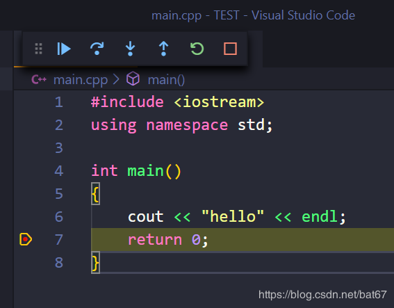 保存一下,然后切换至test.cpp,再次按F5启动调试~