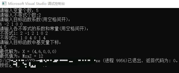 cout << "最优值为:MzxZ = " << MaxZ;