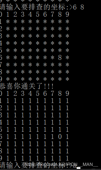 int GetMineCount(char mine[ROWS][COLS], int x, int y)//返回值,即在玩家输入坐标时,判断该坐标有没有雷,如果没有返回周围一圈的雷数