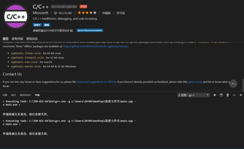 用了一段时间的cb,Devc++,但一直感觉cb的高亮太差,而Devc++使用体验差(尤其是代码补全功能),换过vs2017,但是由于其太大了,卡顿十分明显,所以最终选择了vscode这款轻量级编译器。由于自己在配置c++开发环境时遇到了不少问题,因此特地写了这篇博文,希望能够帮助后来者快速实现c++环境配置。