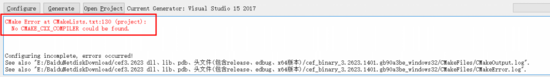 Configure: 选择你电脑上装有的VS的编译器的版本,如果选择了电脑本地并没有的VS编译器版本,会遇到如下情况: