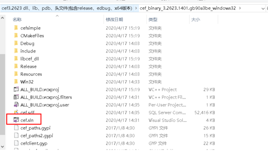 1、解压 cef_binary_3.2623.1401.gb90a3be_windows32 后,目录如下: